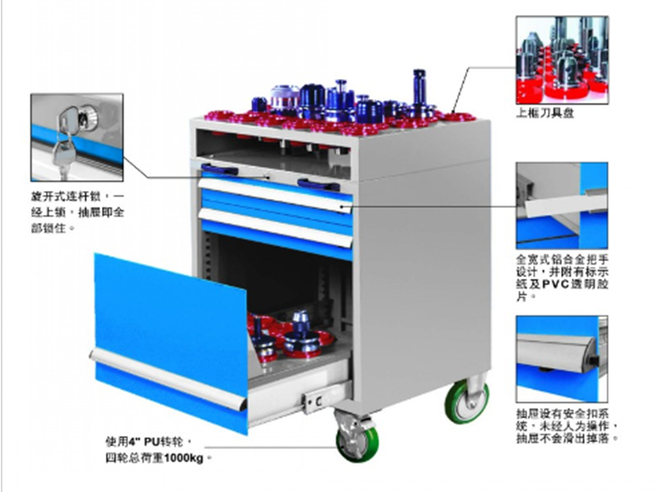 3、 刀具車高強度的結果設計和噴粉表面處理工藝,能適應工廠較復雜的工作刀具車環境。